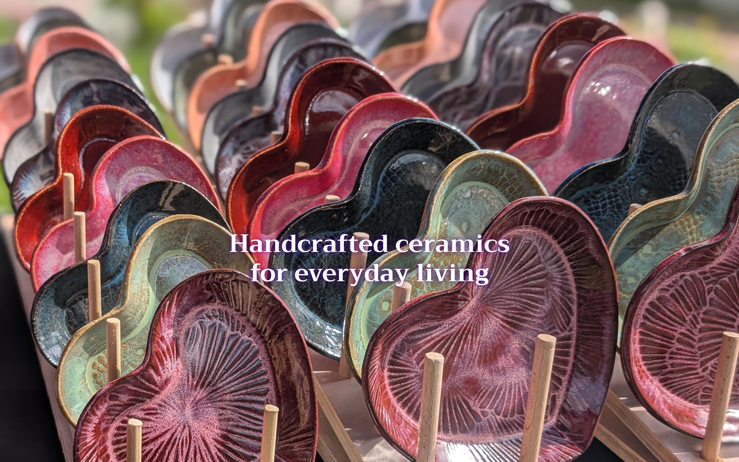 The glazes are chosen to highlight the textured patterns and character of the clay.
